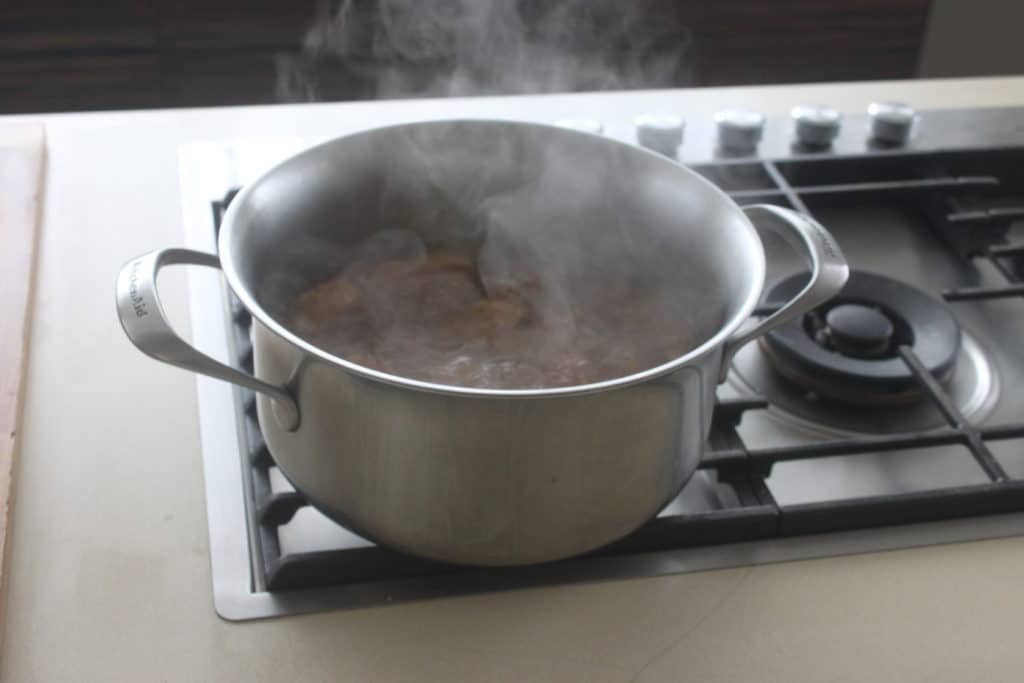 - Laissez ensuite cuire de nouveau 1h30, cette fois sans couvercle en baissant le feu.