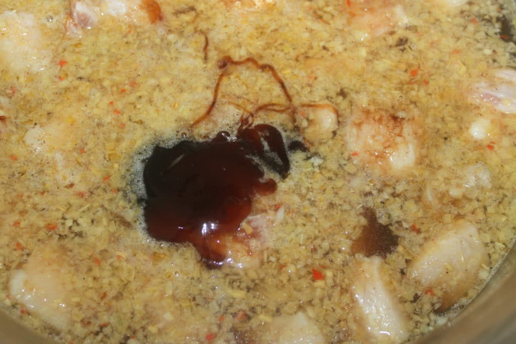 - Versez le nuoc mam, la sauce de soja et la sauce d’huitre. Versez suffisamment d’eau pour recouvrir la viande totalement.