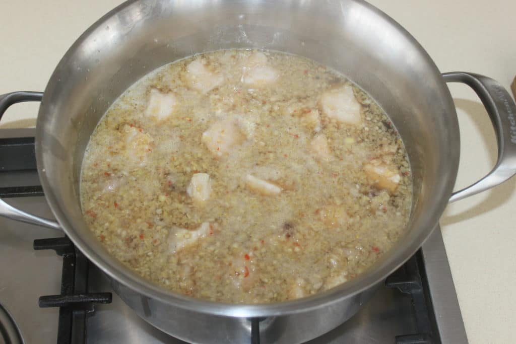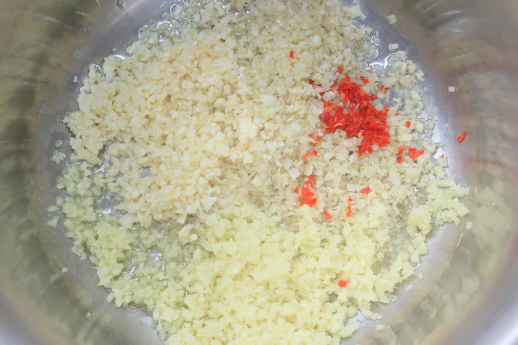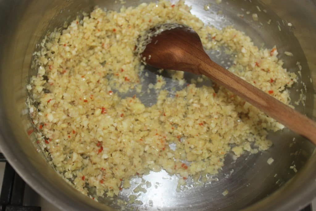 Faites cuire 5 minutes sur feu soutenu l’ail gingembre etc.