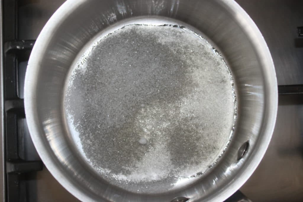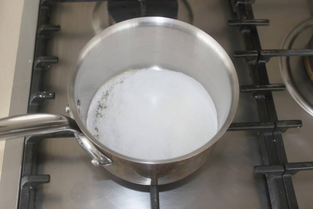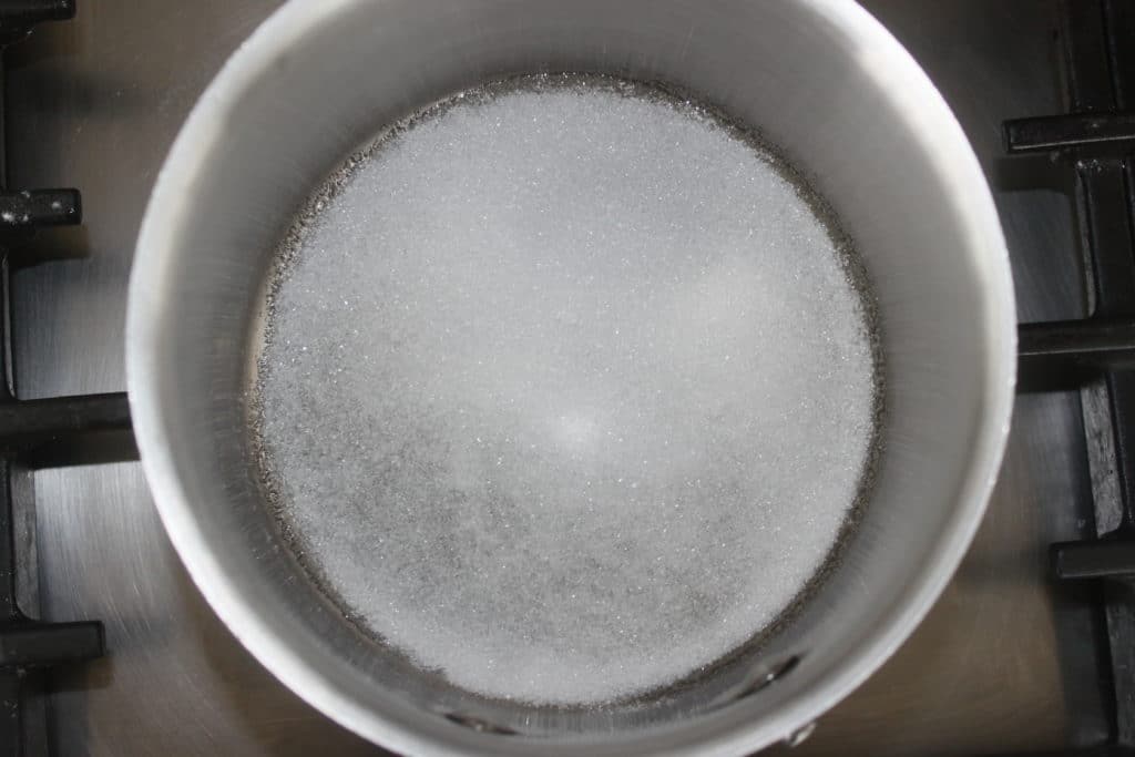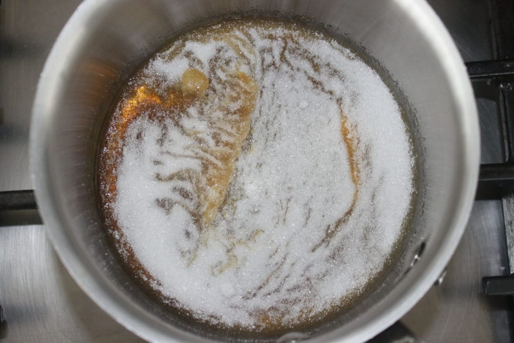 - Ajoutez alors une deuxième cuillerée à soupe puis laissez le sucre fondre de nouveau.