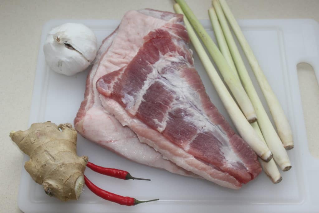 - Pour cette recette, j’ai pris de la poitrine de porc sans la peau. J’ai simplement demandé à mon boucher de la retirer pour moi.