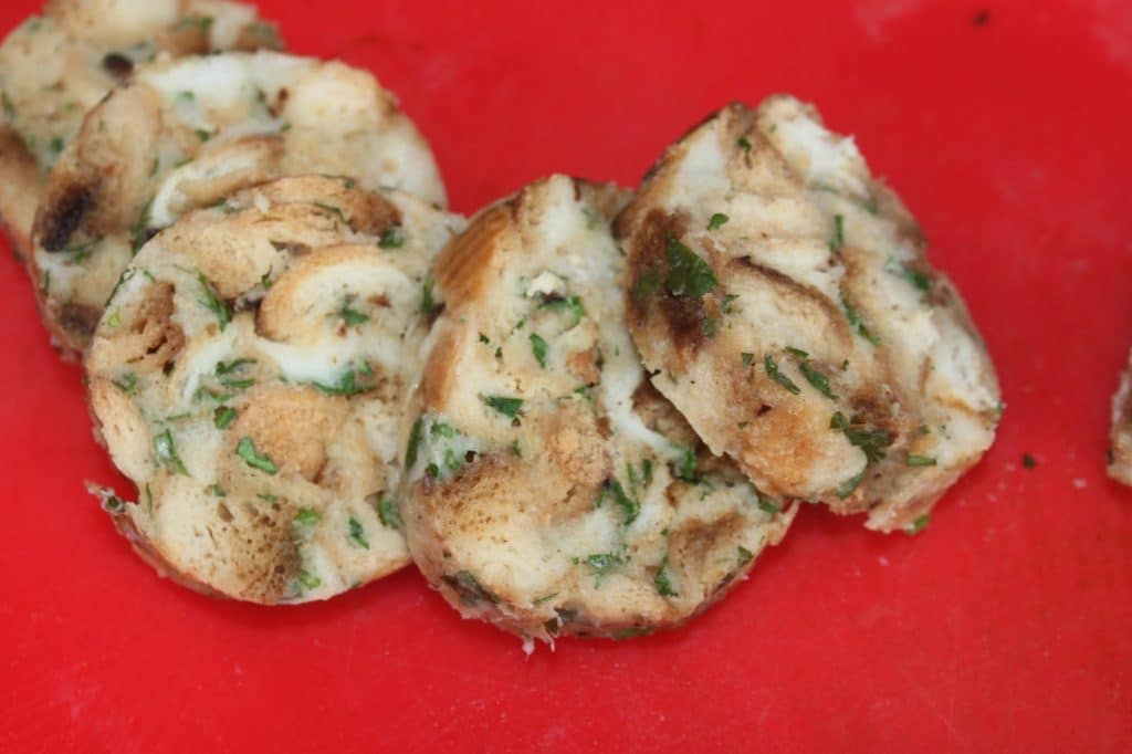 - Puis avec un bon couteau, coupez de larges tranches.