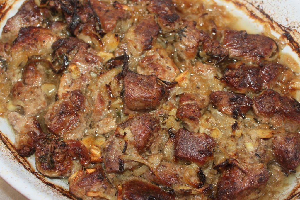 - Mettez-les dans un plat allant au four (dans le four où est en train de cuire le porc).