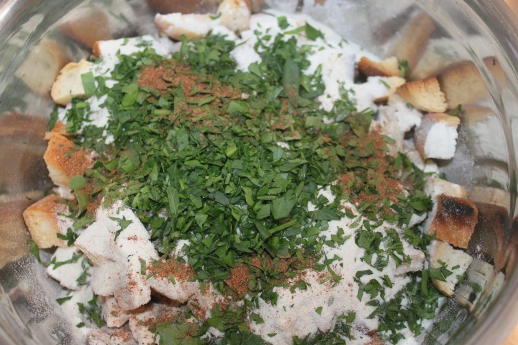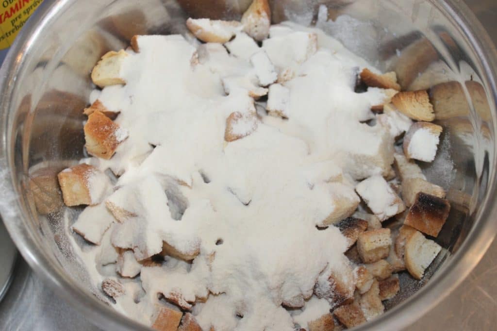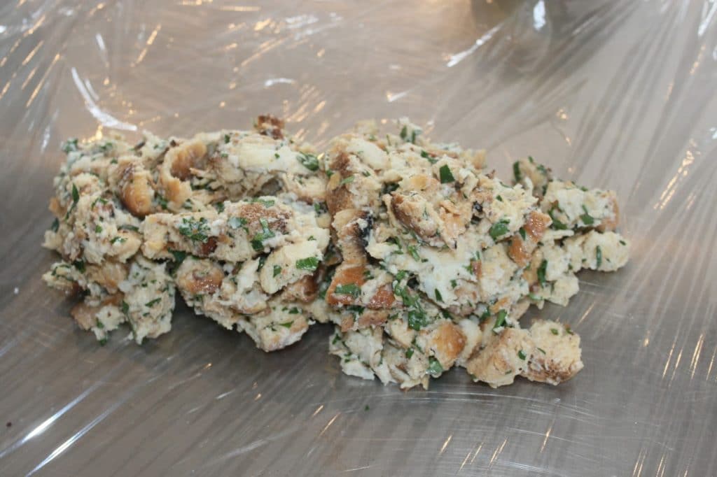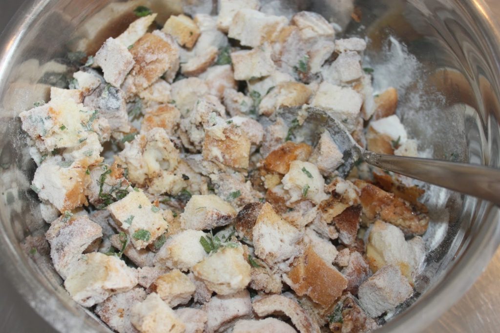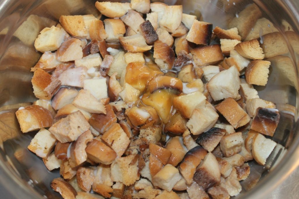 - Mélangez sans écraser le pain.