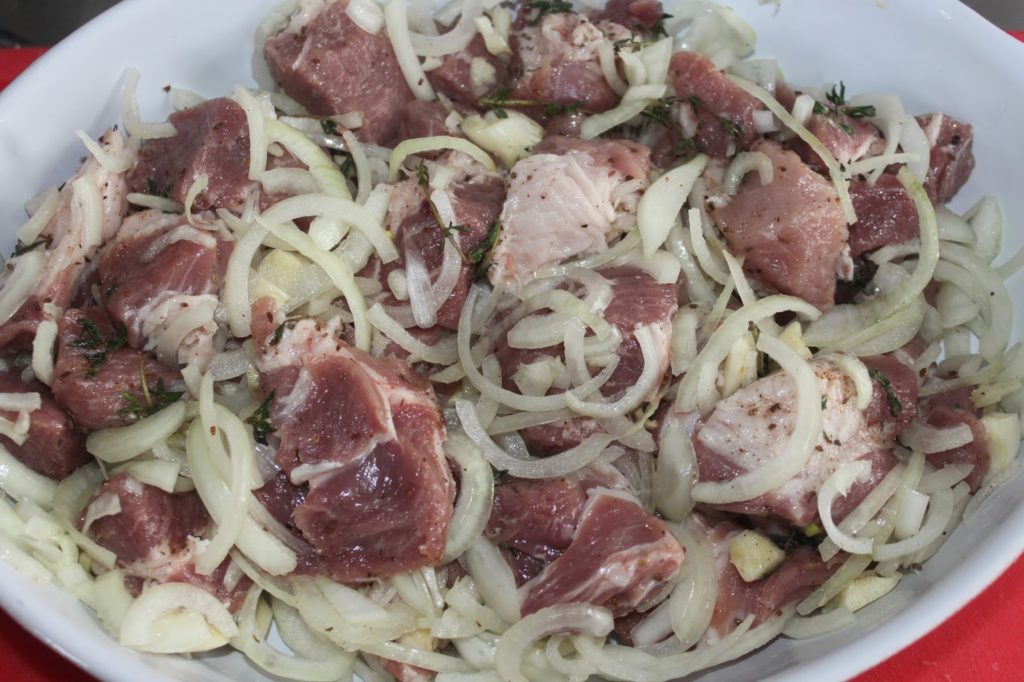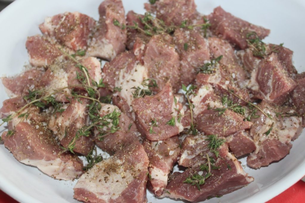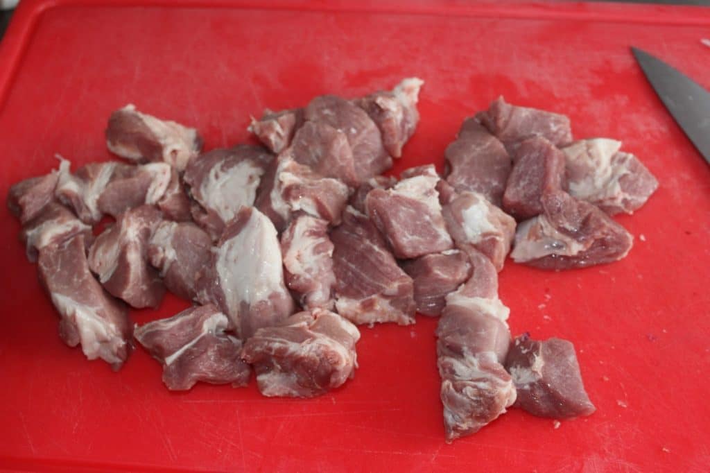 - Coupez le porc en morceaux.