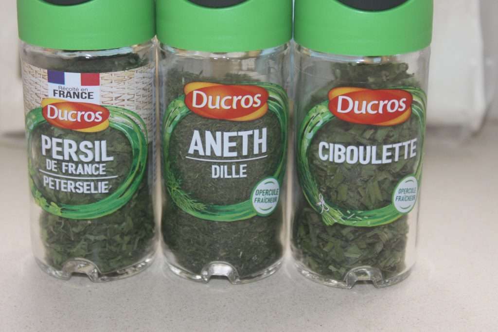 - Versez également les herbes déshydratées. C’est ce que j’ai acheté pour la recette ! Prenez la marque que vous trouverez, je ne suis pas sponsorisé par Ducros !