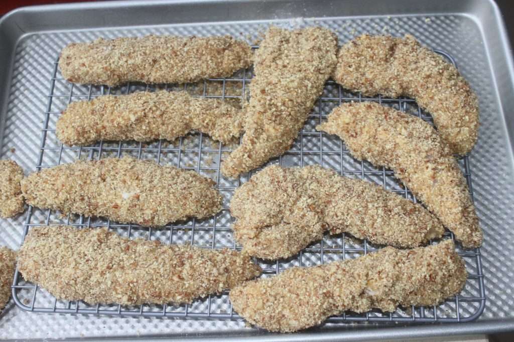 Haz lo mismo con todas las aiguillettes. Colocar en una fuente de horno, sobre una rejilla o sobre papel de hornear.