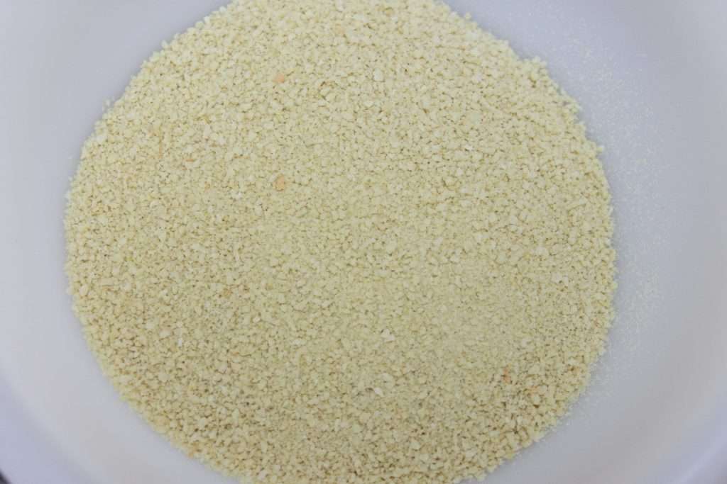 - Versez la chapelure dans un récipient assez large.