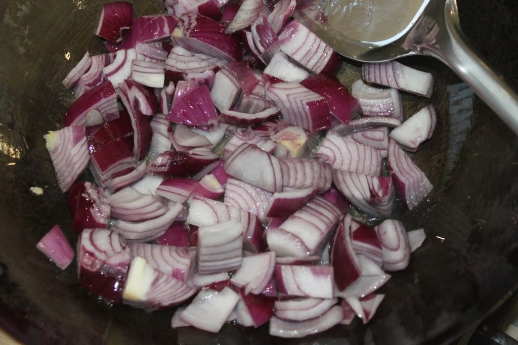 - Épluchez et coupez les oignons rouges en gros morceaux.