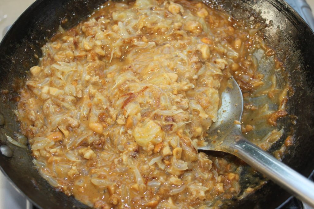 Mélangez tout le temps en raclant bien la sauce qui caramélise sur le bord du wok. La sauce doit être crémeuse avant d’ajouter la suite.