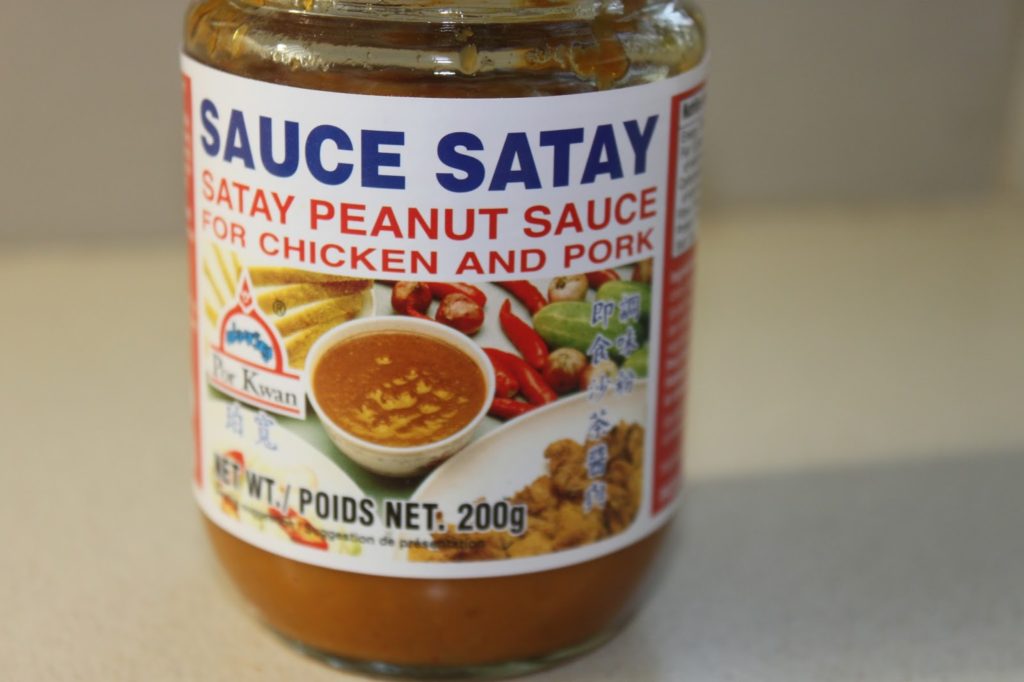 On trouve aujourd’hui facilement de la sauce satay. On peut aussi la faire maison (voir ma recette ICI) , mais pour ce plat, c’est aussi simple avec une déjà prête.
