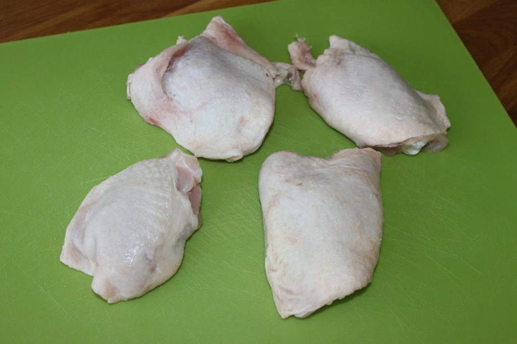 Enlevez la peau, les os et cartilages des hauts de cuisses.