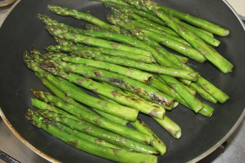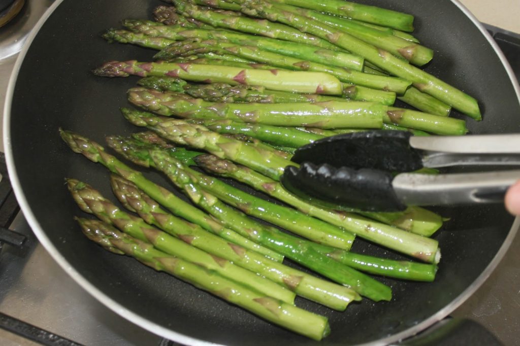 - Placez les asperges et faites-les sauter sur feu fort.