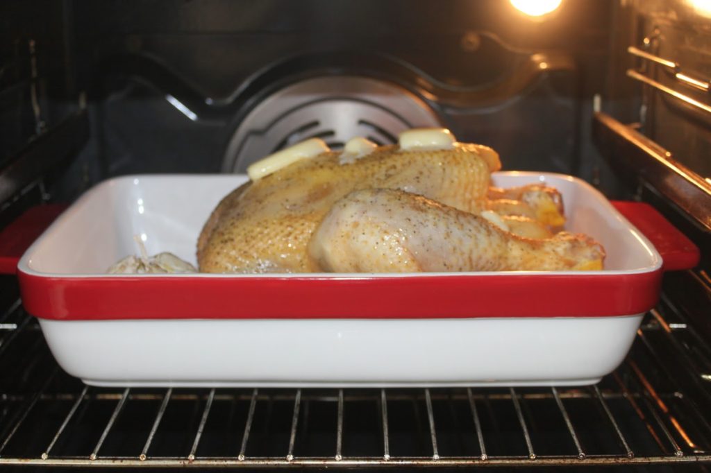 - Au bout de 30 minutes de cuisson, sortez le poulet du four.