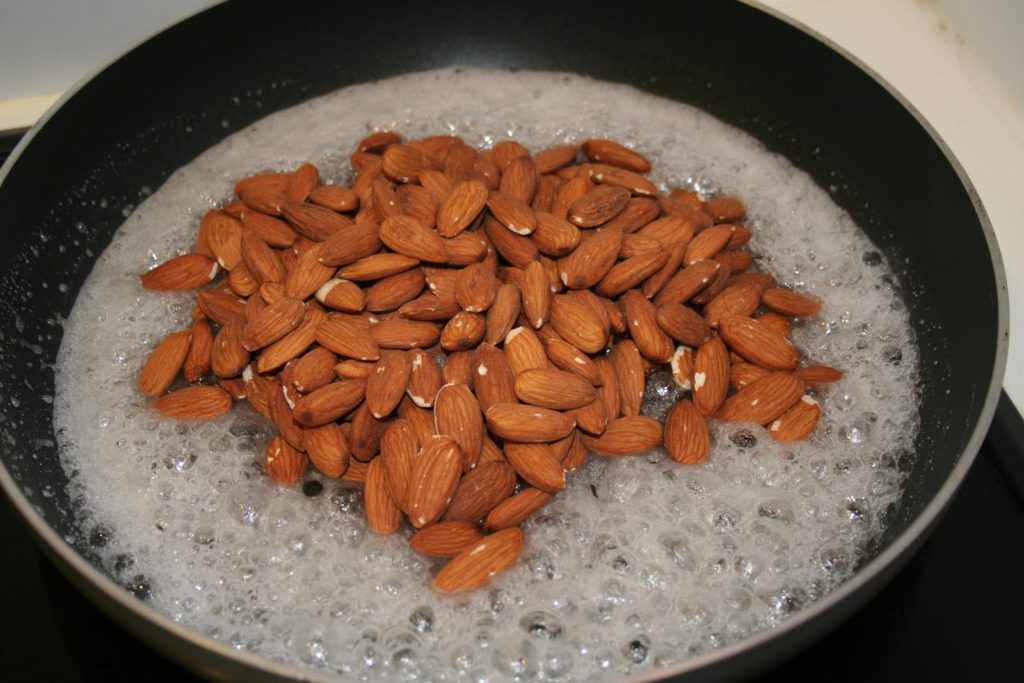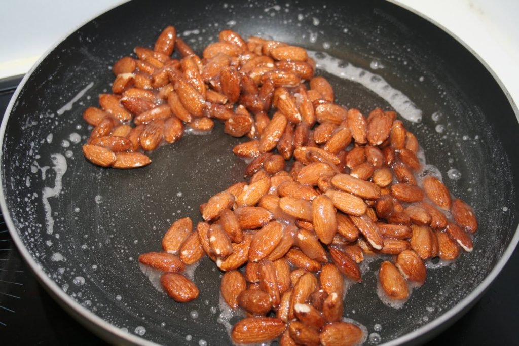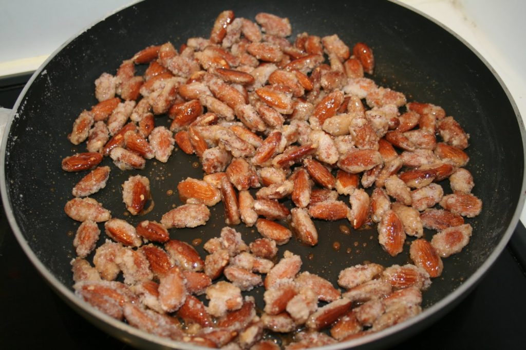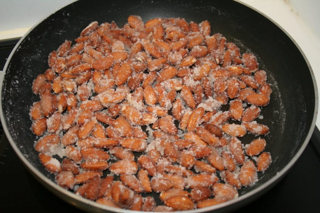 - Bien mélanger avec une cuiller en bois pour bien recouvrir chaque amande de sucre.