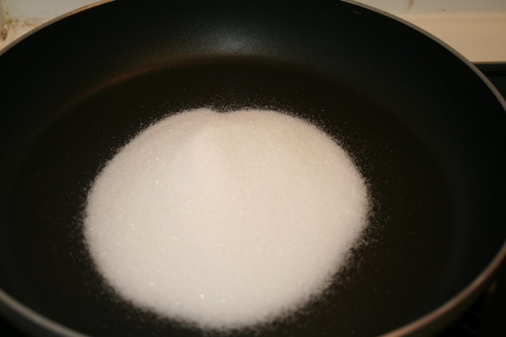 - Verser le sucre dans une poêle. Mettre sur feu moyen.