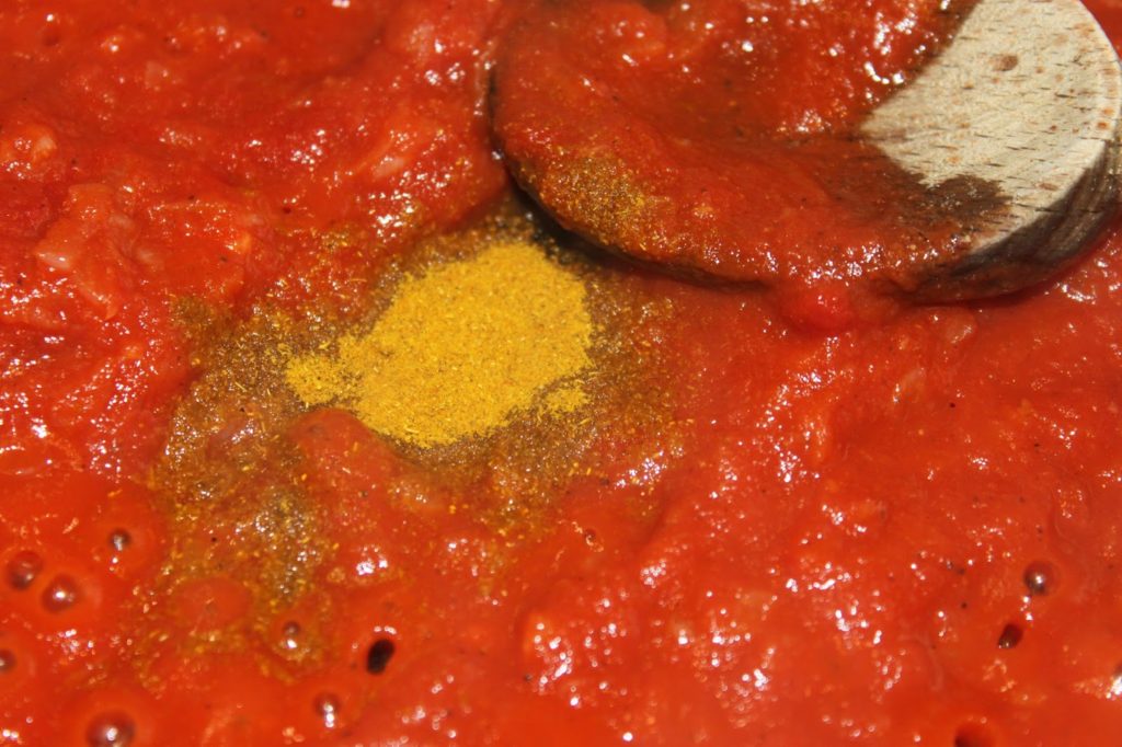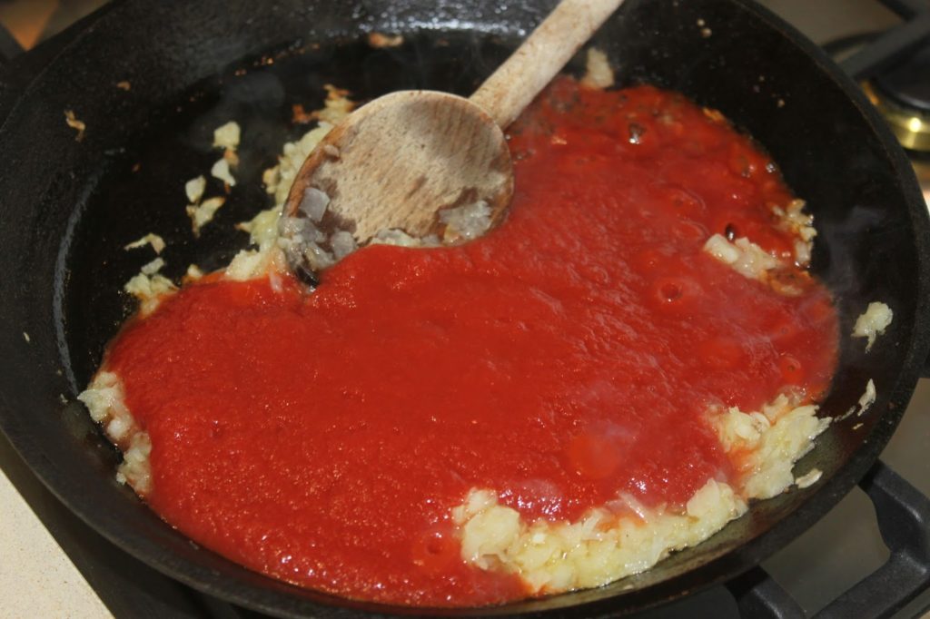 - Laissez cuire 5 minutes puis versez le coulis de tomate.