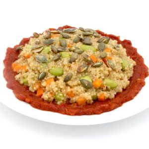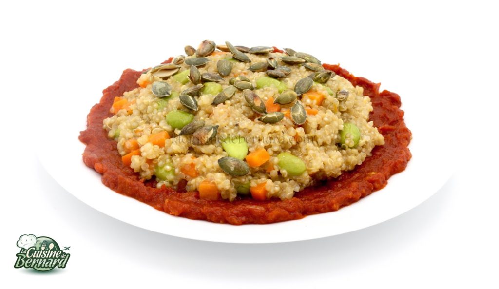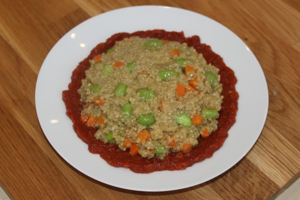 - Étalez uniformément puis servez une portion de quinoa aux légumes sur la sauce.