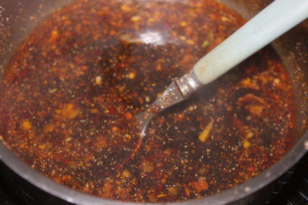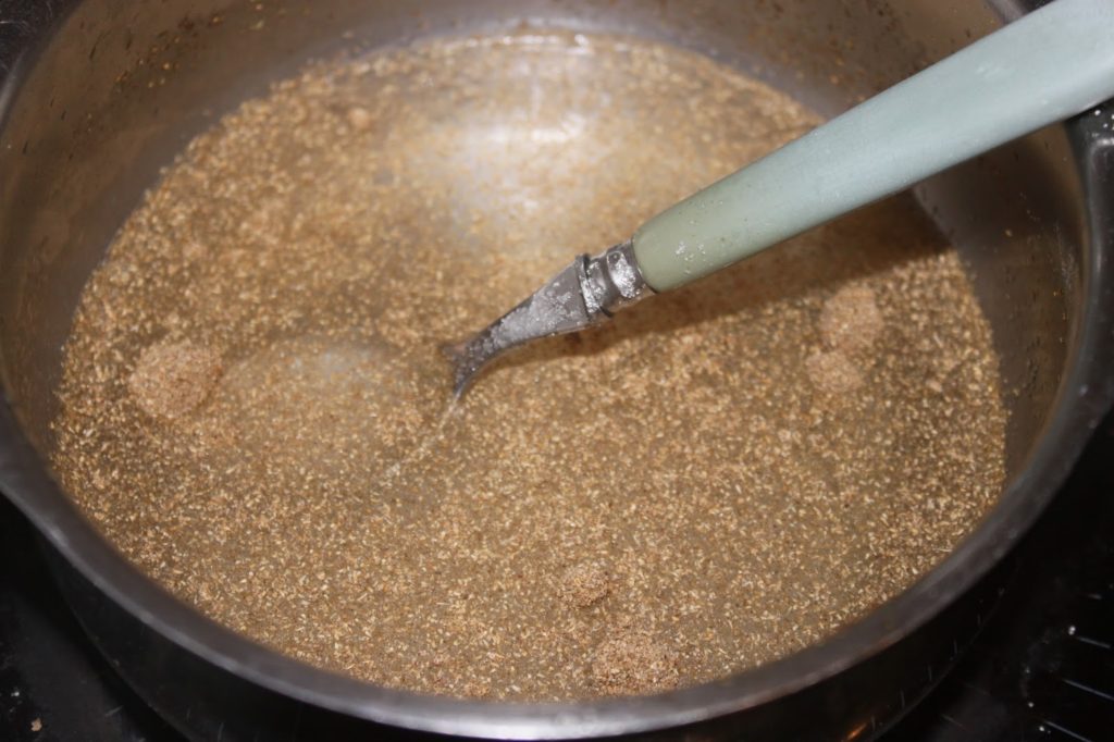 Pour la sauce: mettez l’eau, le sucre et la coriandre moule dans une casserole. Portez à ébullition.