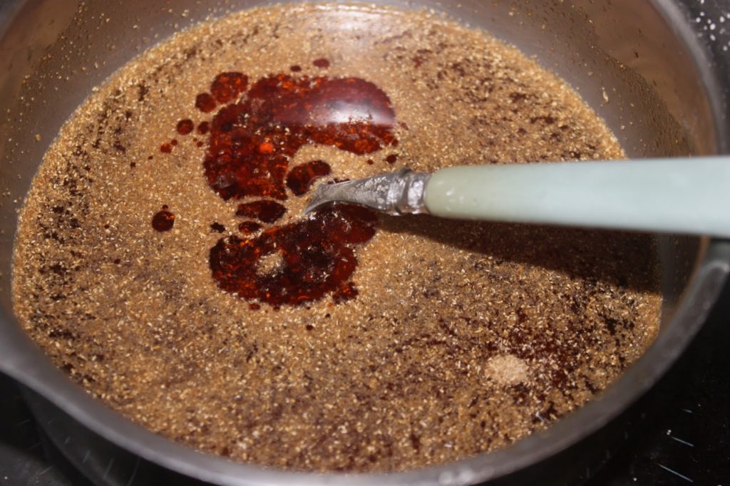- Pour la sauce: mettez l’eau, le sucre et la coriandre moule dans une casserole. Portez à ébullition.