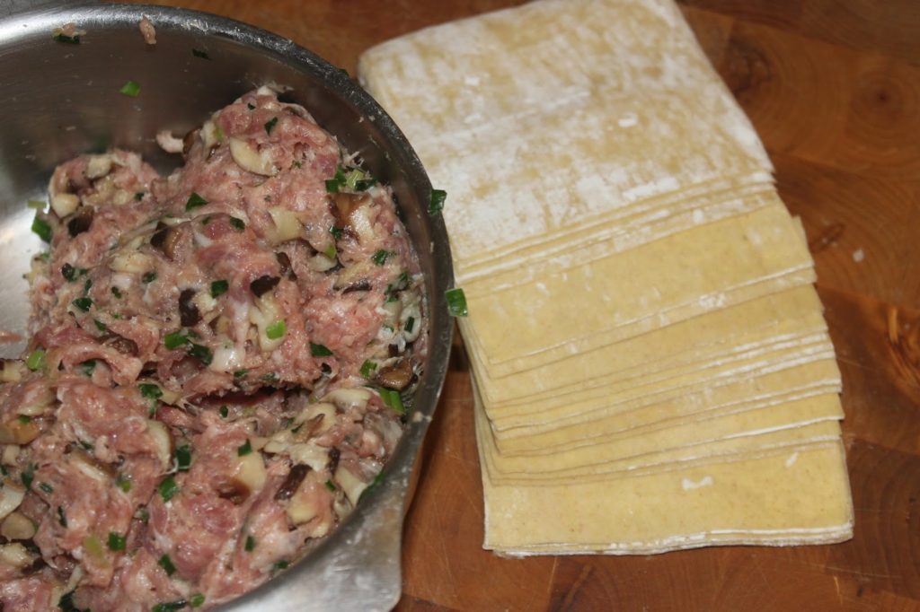 Recette pour une trentaine de raviolis (5 à 6 personnes) :