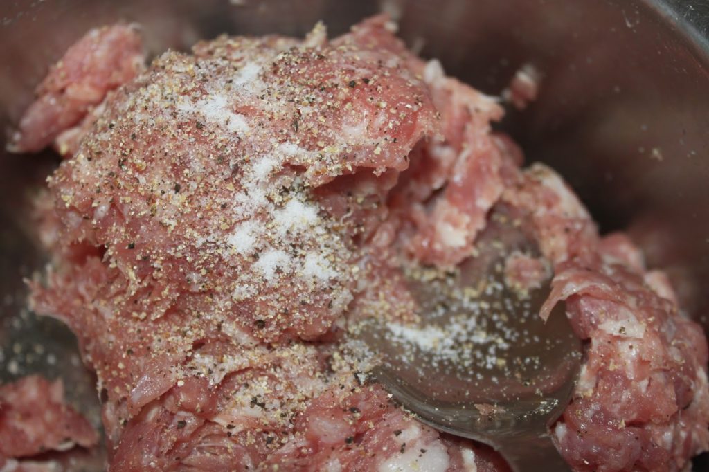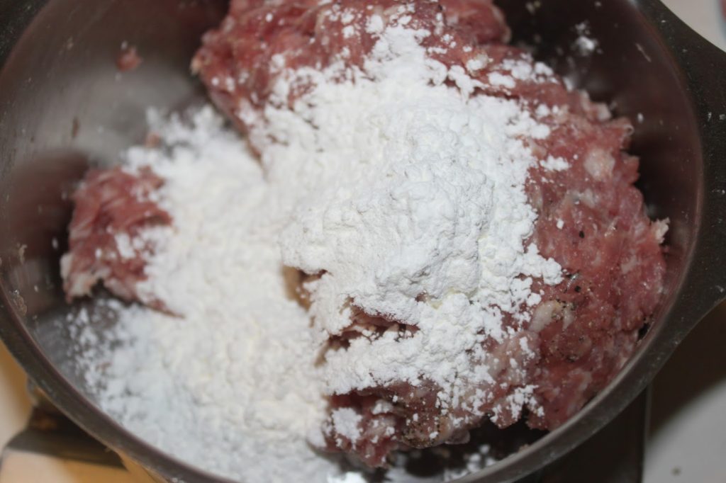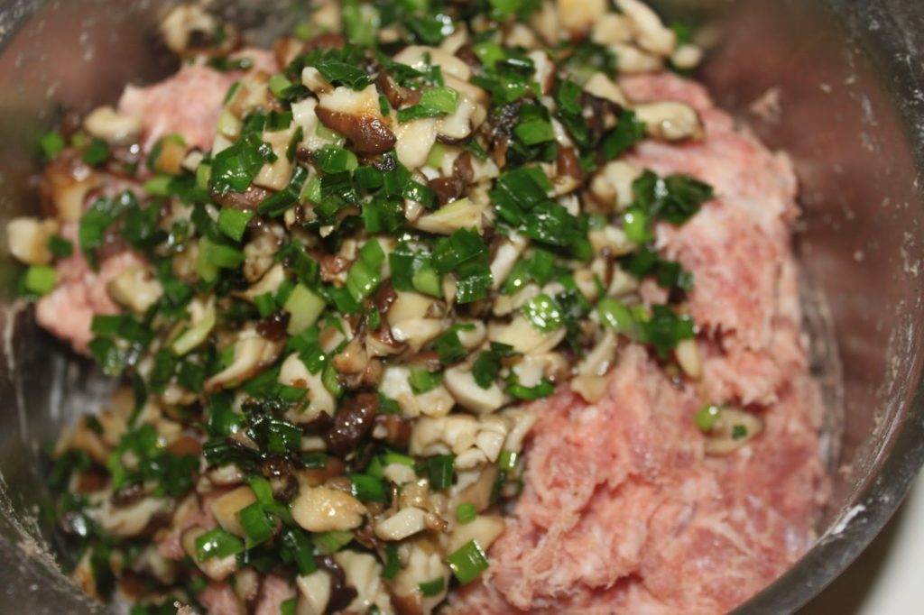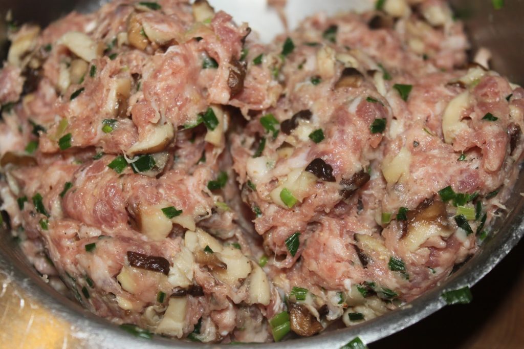 - Mettez la viande dans un récipient. Vous pouvez remplacer par du poulet, du bœuf ou même une recette 100% végétarienne, en ne mettant que des champignons et la ciboulette. Il faudrait alors mettre 350g de champignons et 10 branches de ciboulette supplémentaires.