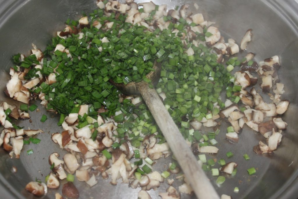 - Mélangez soigneusement puis ajoutez les champignons cuits.
