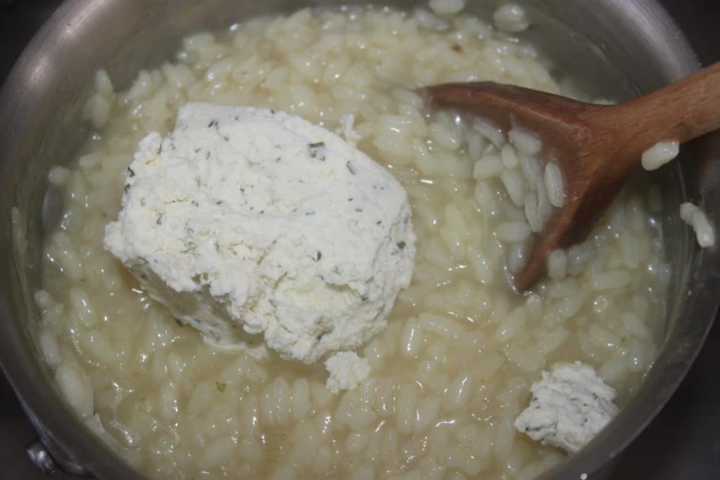 - Quand tout le bouillon a été absorbé, ajoutez le Boursin®.