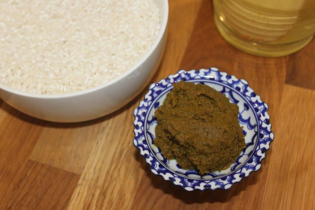 - Ce qui est bien avec une pâte maison, est que je peux contrôler le niveau de piment. Je mets trois piments entiers sur les 18 qui sont dans la pâte. Vous pouvez prendre une pâte du commerce, mais elle sera plus forte et il faudra en mettre moins.
