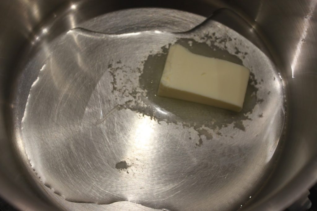 - Pour le risotto : mettez le beurre et l’huile dans une large casserole sur feu doux.