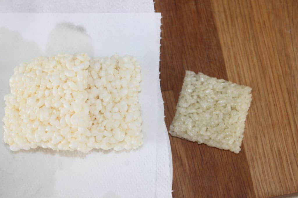 Aquí puedes ver la diferencia de tamaño entre el crudo a la derecha y el cocido a la izquierda.