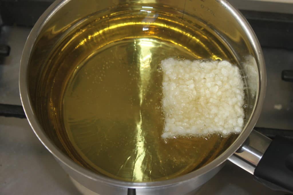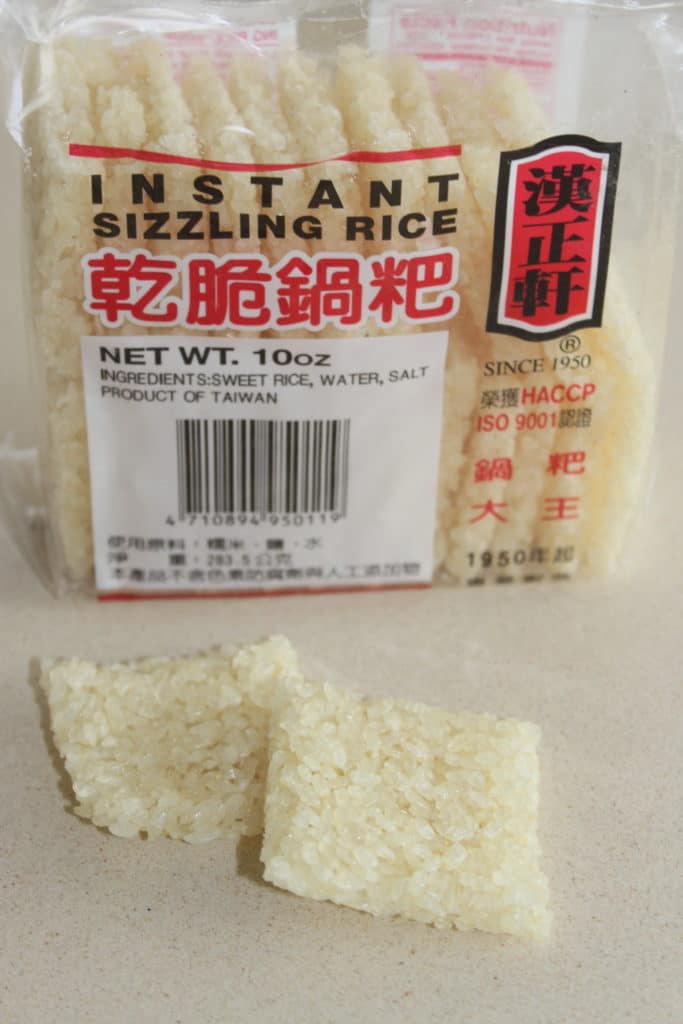 Estos son los pasteles de arroz que compro. Cuando se fríen, quedan muy, muy crujientes.