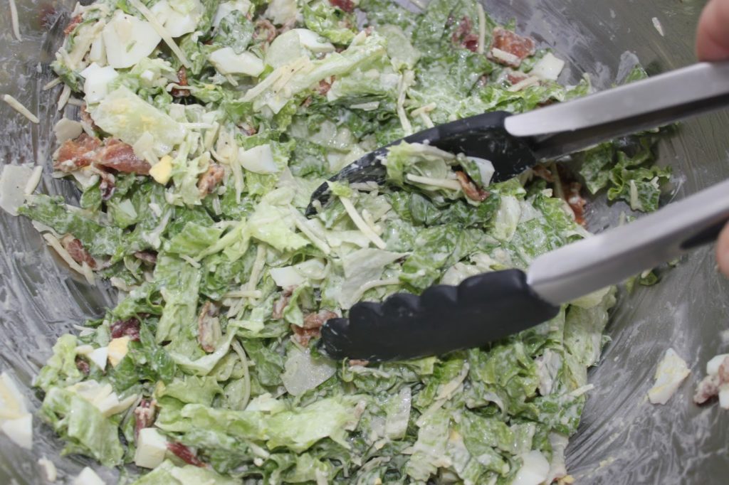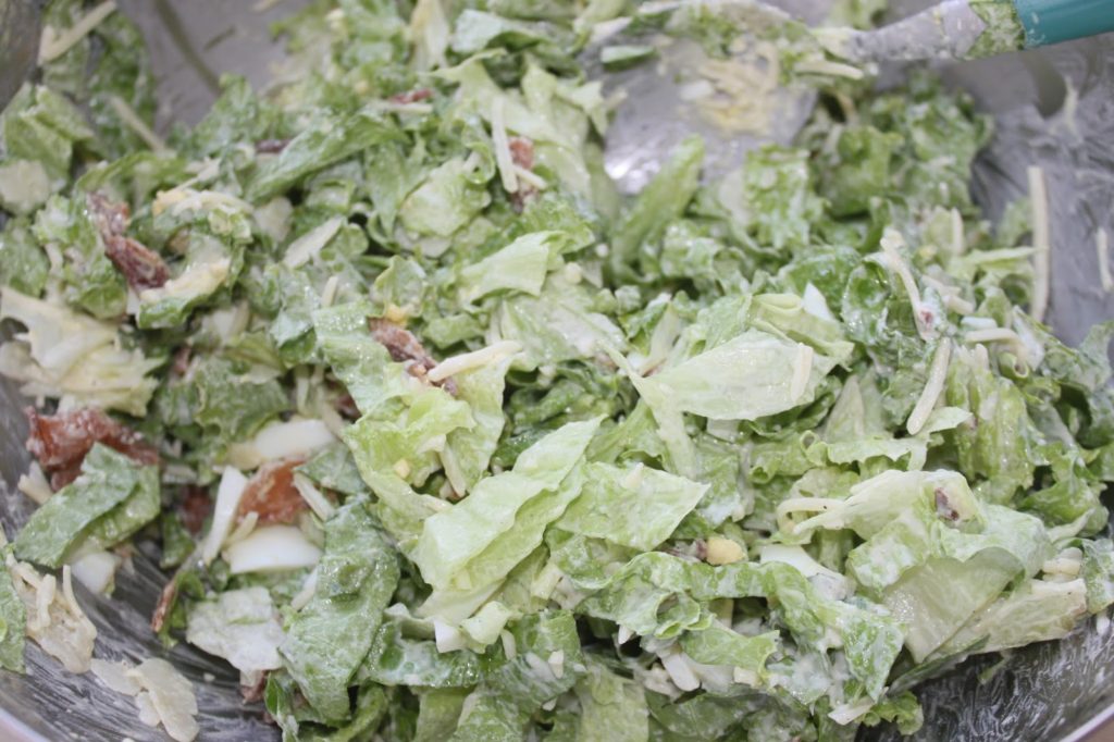 Ajoutez de la salade. Je prends pour cela une pince, c’est beaucoup plus facile !