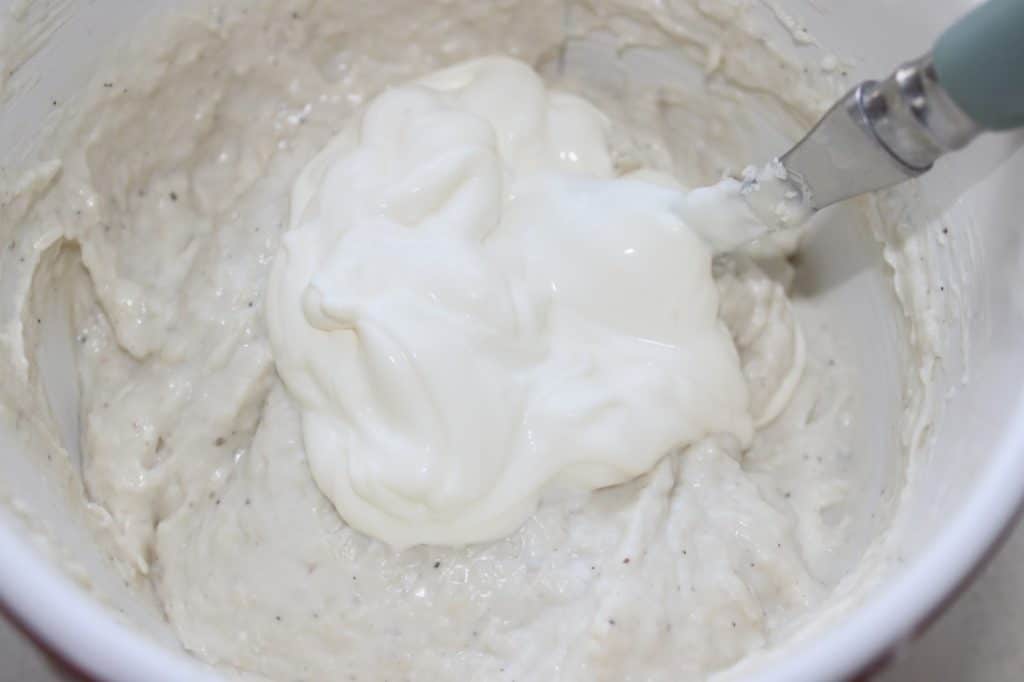 - Versez la crème entière et mélangez une dernière fois.