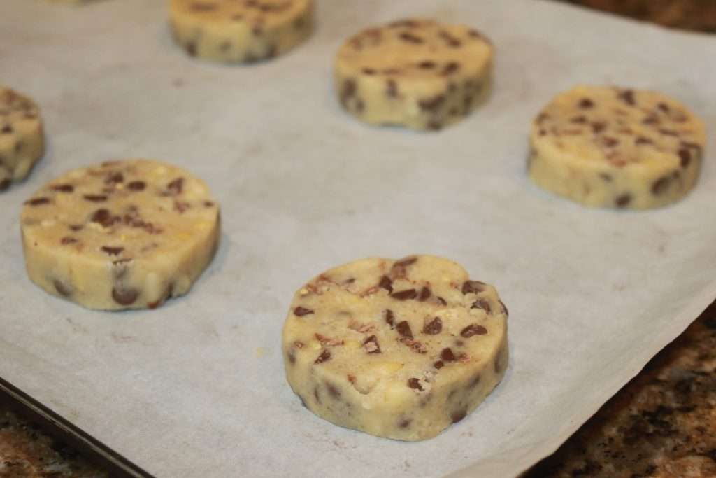De gros sablés bien croustillants, avec plein de chocolat au lait, des pignons de pin et des noisettes en poudre. Une véritable gourmandise irrésistible à mes yeux. Un seul suffira. Vous pourrez aussi les couper en tranches avant de les congeler crus, puis de les cuire à la demande.
