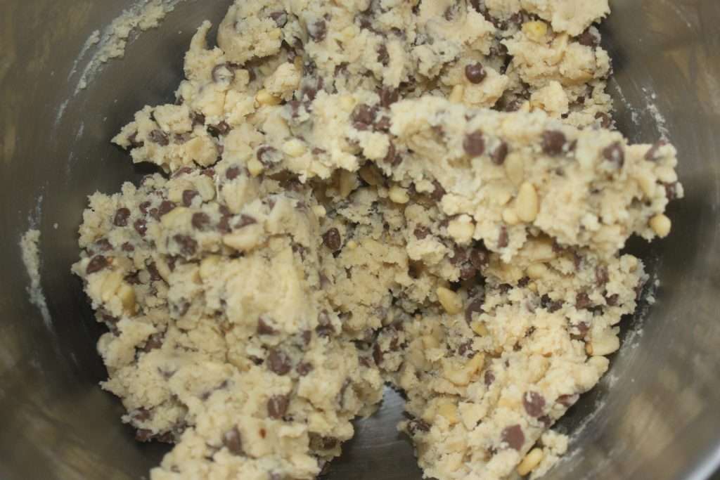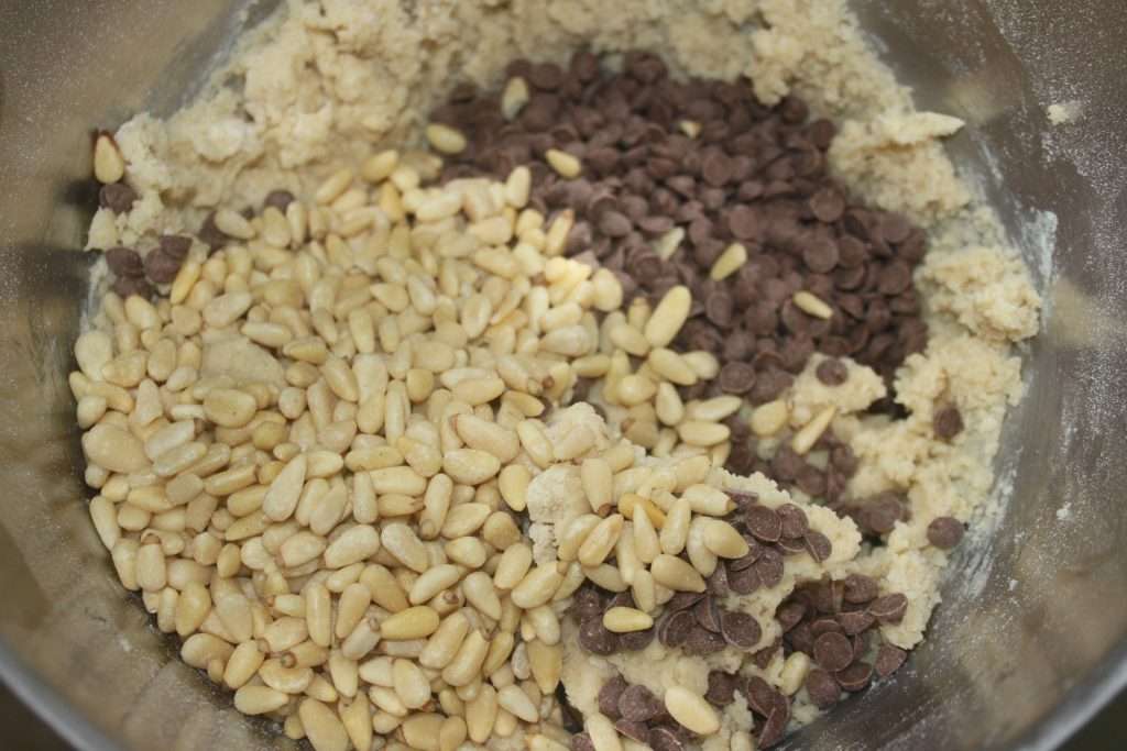 - Mélangez de nouveau puis ajoutez les pignons et les pépites.