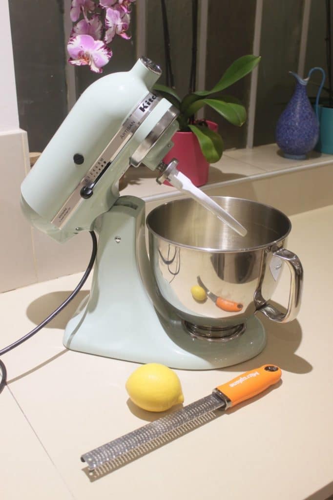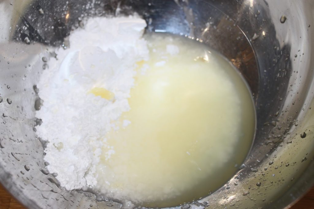 - Pour le glaçage: mettez le sucre glace et le jus de citron (fraichement pressé et pesé) dans un récipient.