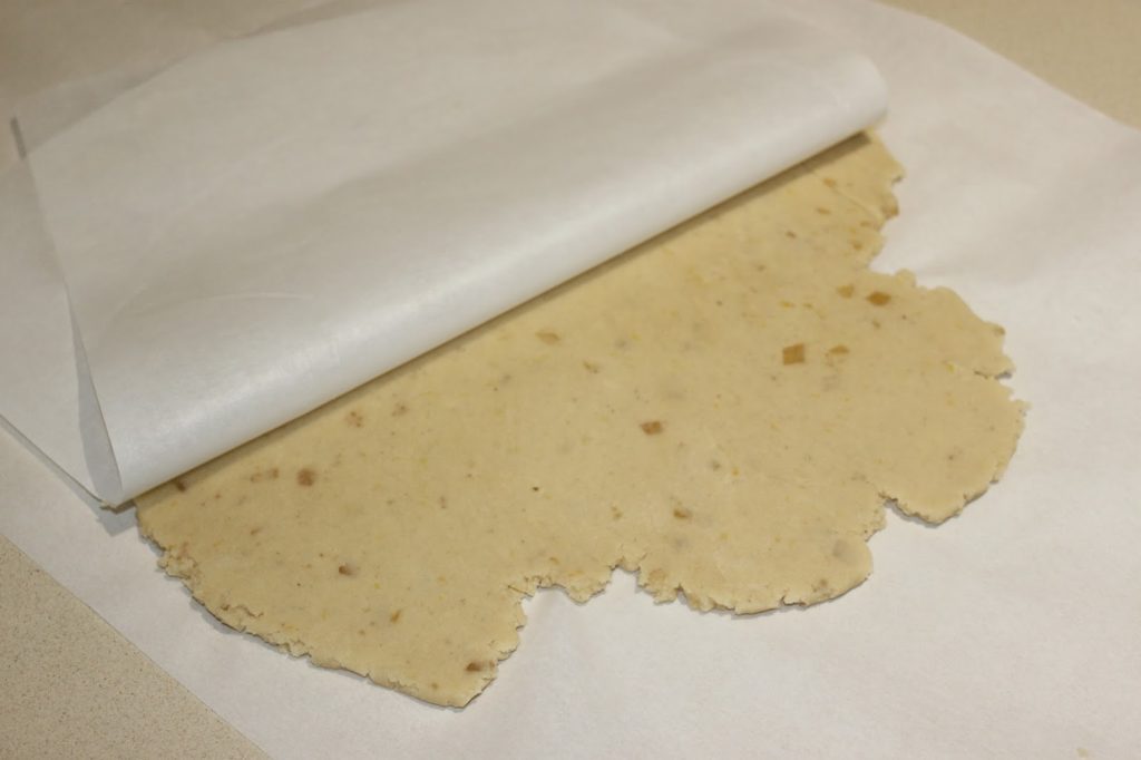 Étalez-la tout de suite entre deux feuilles de papier cuisson sur une épaisseur de 6mm.