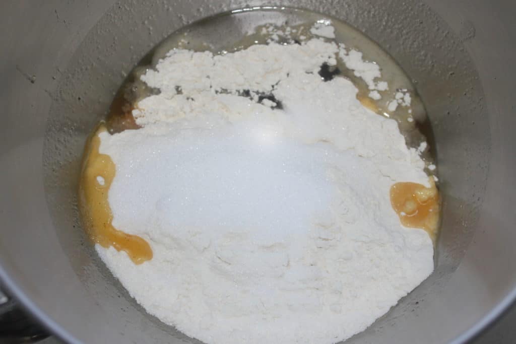 Laissez reposer 20 minutes avant d’ajouter la vanille, le sucre, le sel et la farine.