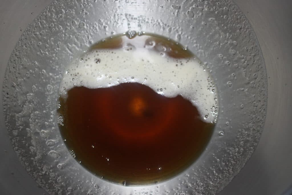 Et laissez-le prendre une belle couleur ambré. Versez-le alors dans un récipient.