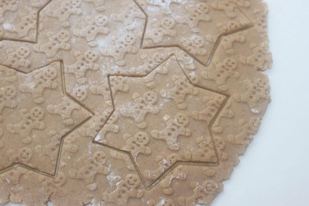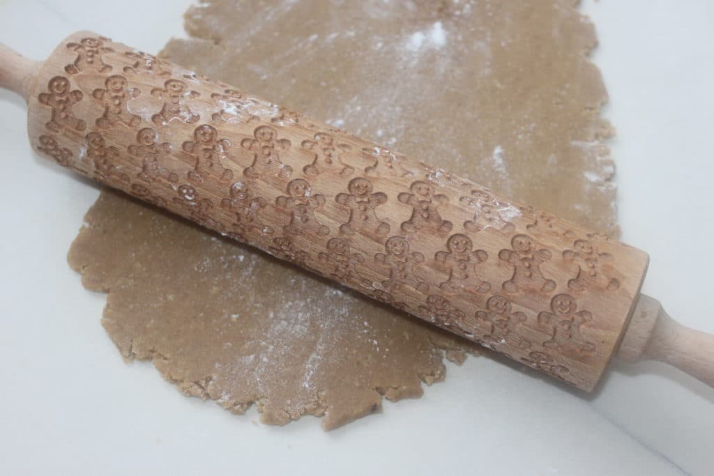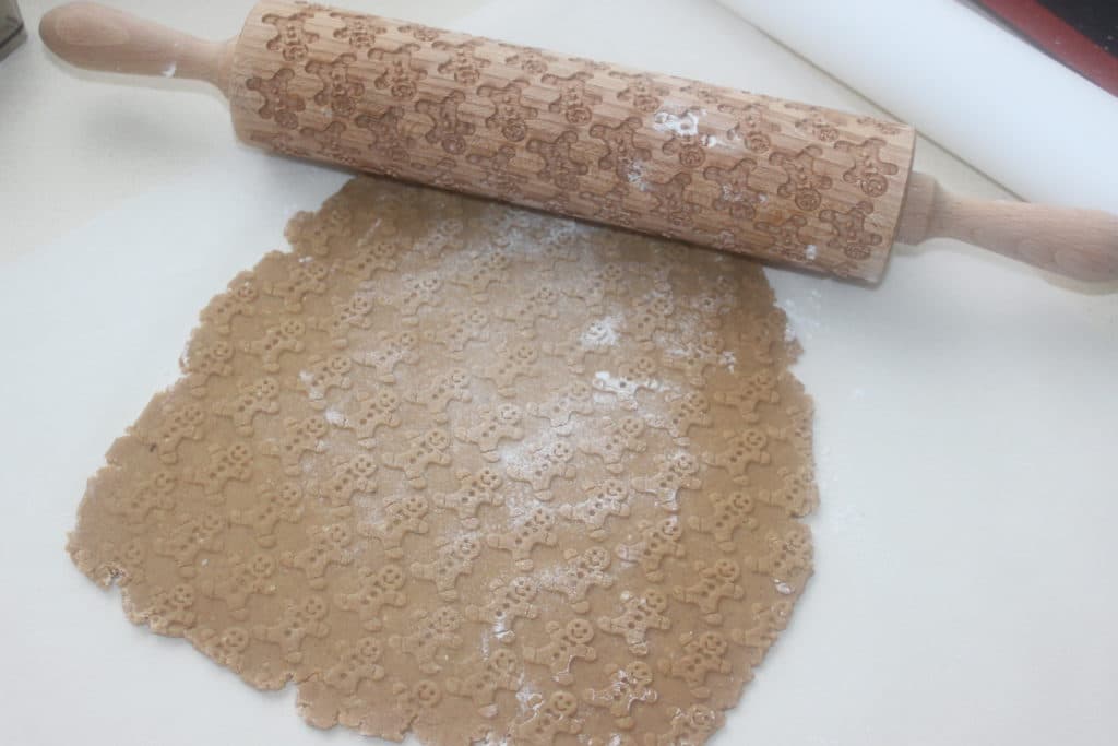 Étalez votre pâte sur 4mm au rouleau classique. Puis si vous avez un rouleau à motif, farinez le dessus de la pâte puis passez le rouleau pour imprimer la pâte.