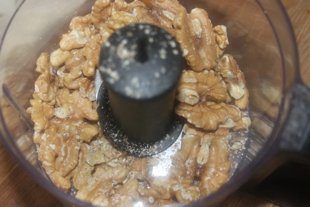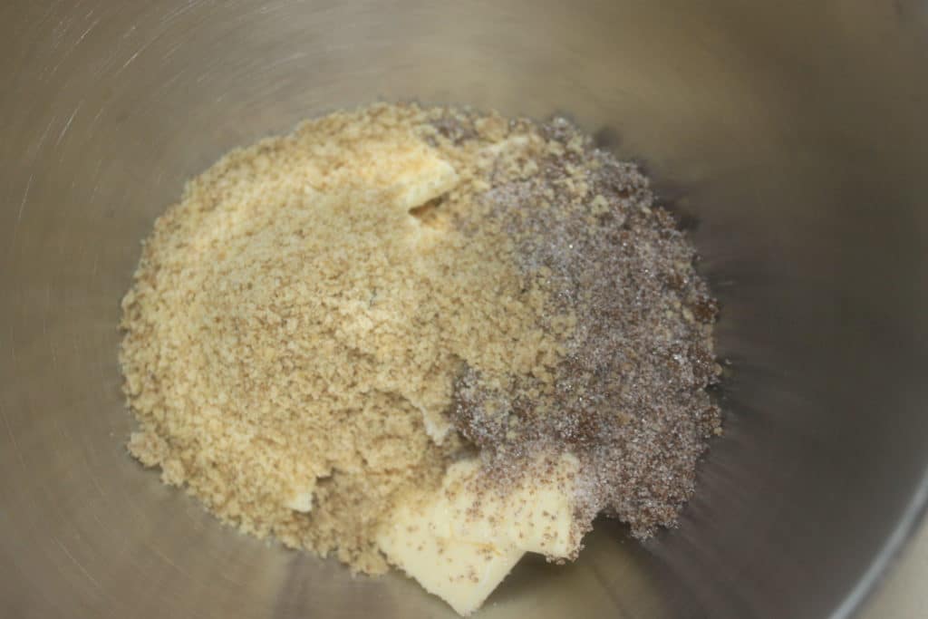 Versez les sucres, le beurre demi-sel, et les noix dans un récipient ou la cuve d’un robot.