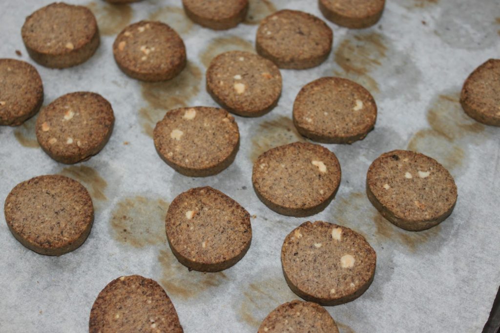 Coupez des tranches de 8mm d’épaisseur. On voit ici les petits morceaux de noisettes.