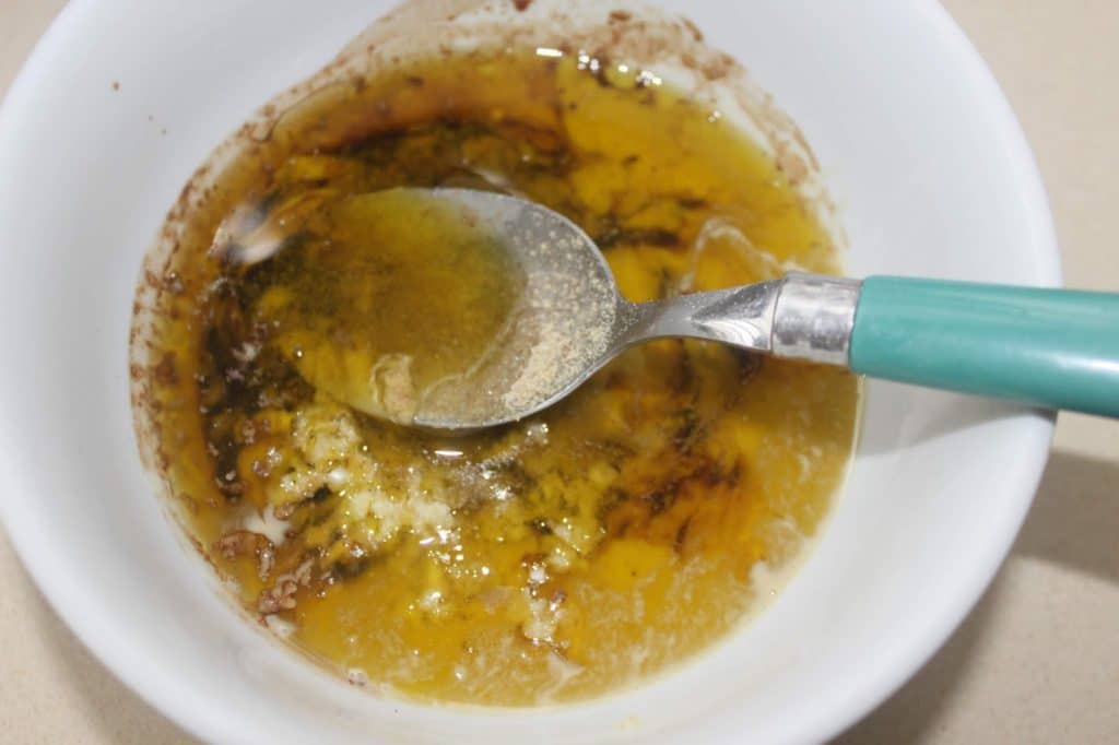 - Pour la sauce mettez tous les ingrédients dans un bol (ail écrasé au presse-ail) et mélangez soigneusement. Salez et poivrez à votre goût.