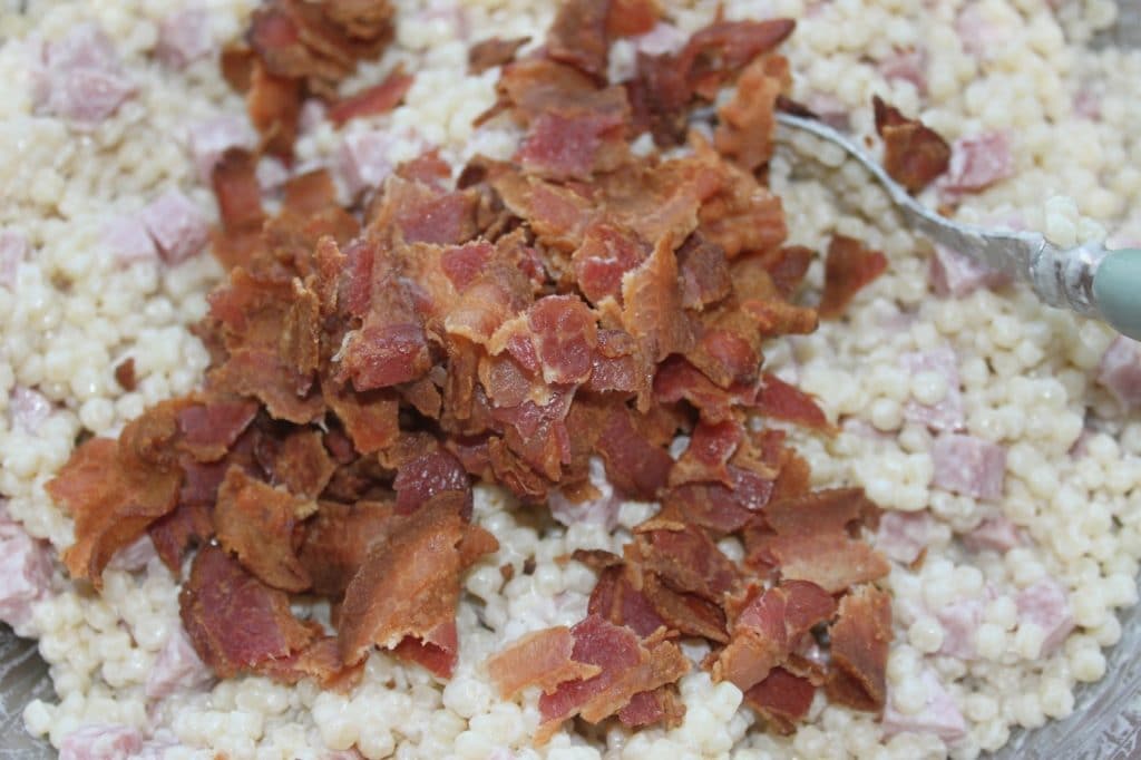 - 250g de jambon coupé en tranches très épaisses puis en cubes