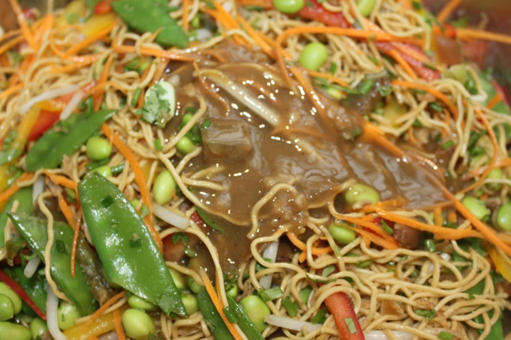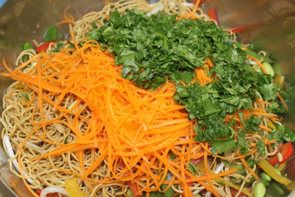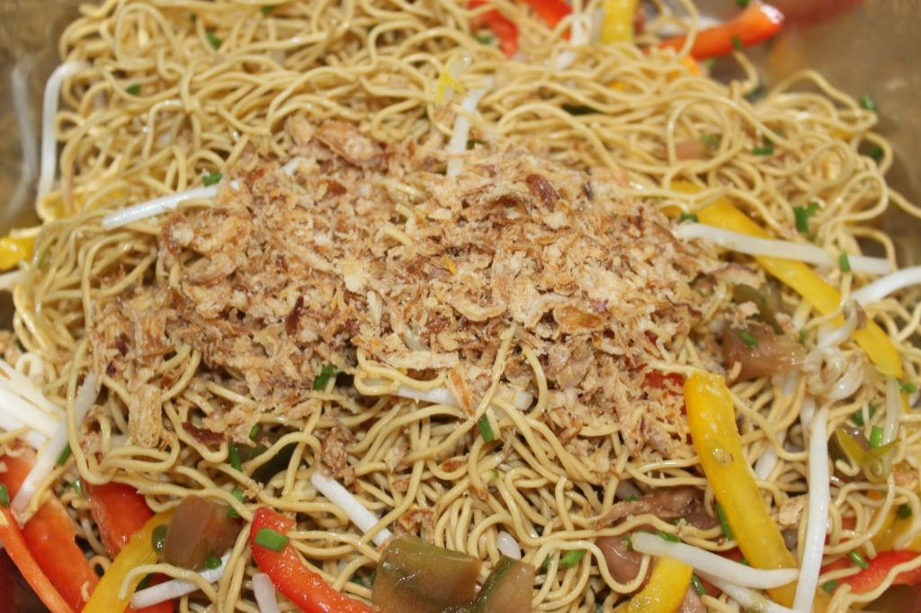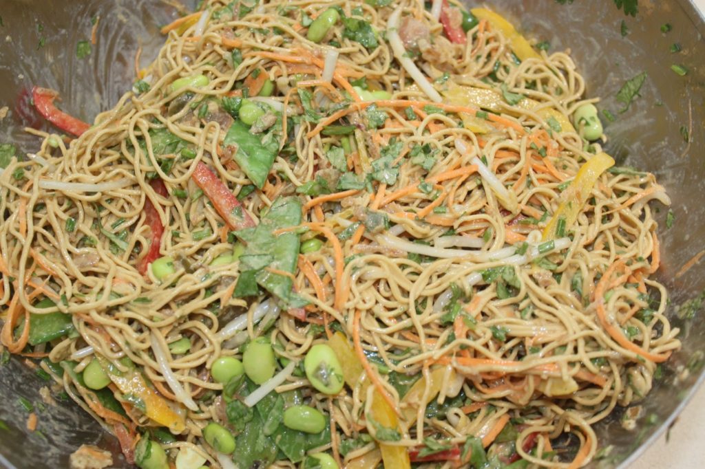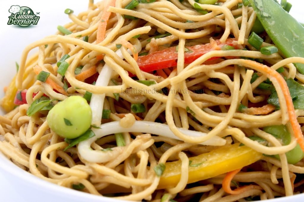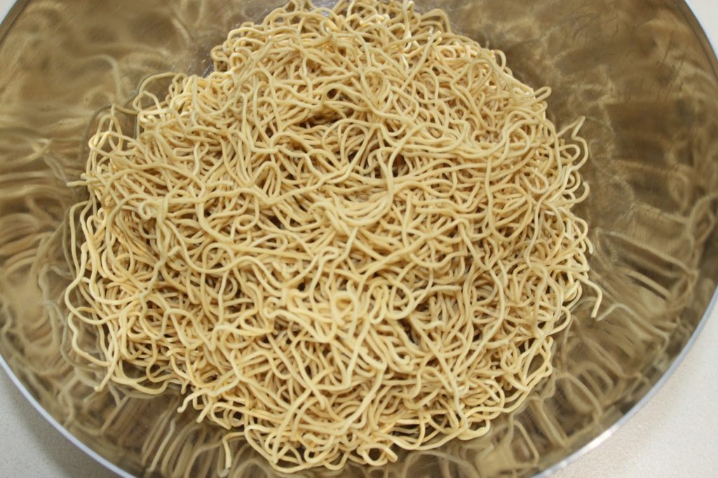 - Faites cuire vos pâtes chinoises comme indiqué sur le paquet et refroidissez-les à l’eau froide. Égouttez-les parfaitement puis placez-les dans un grand récipient.