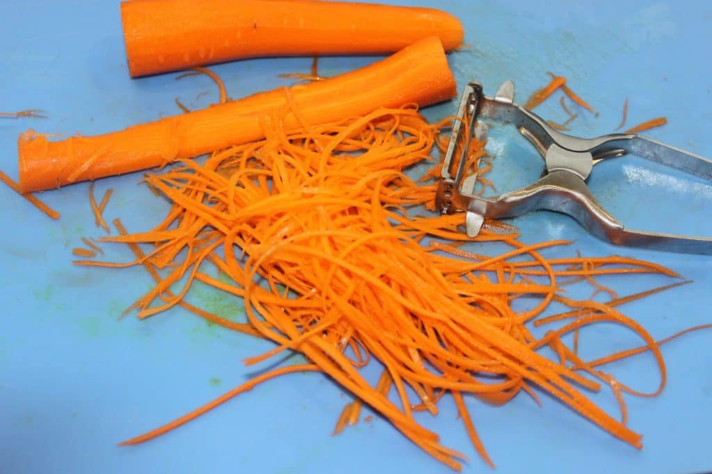 - Et râpez-les. J’ai un ustensile magique qui me permet de me passer d’un robot pour cette étape !