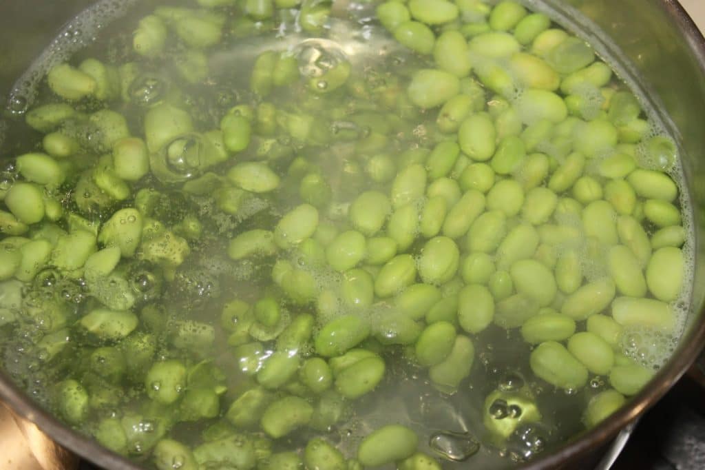 - Faites cuire les edamame (ou les petits pois, les garden peas de Picard sont tops !) pendant 9 minutes à l’eau bouillante salée.