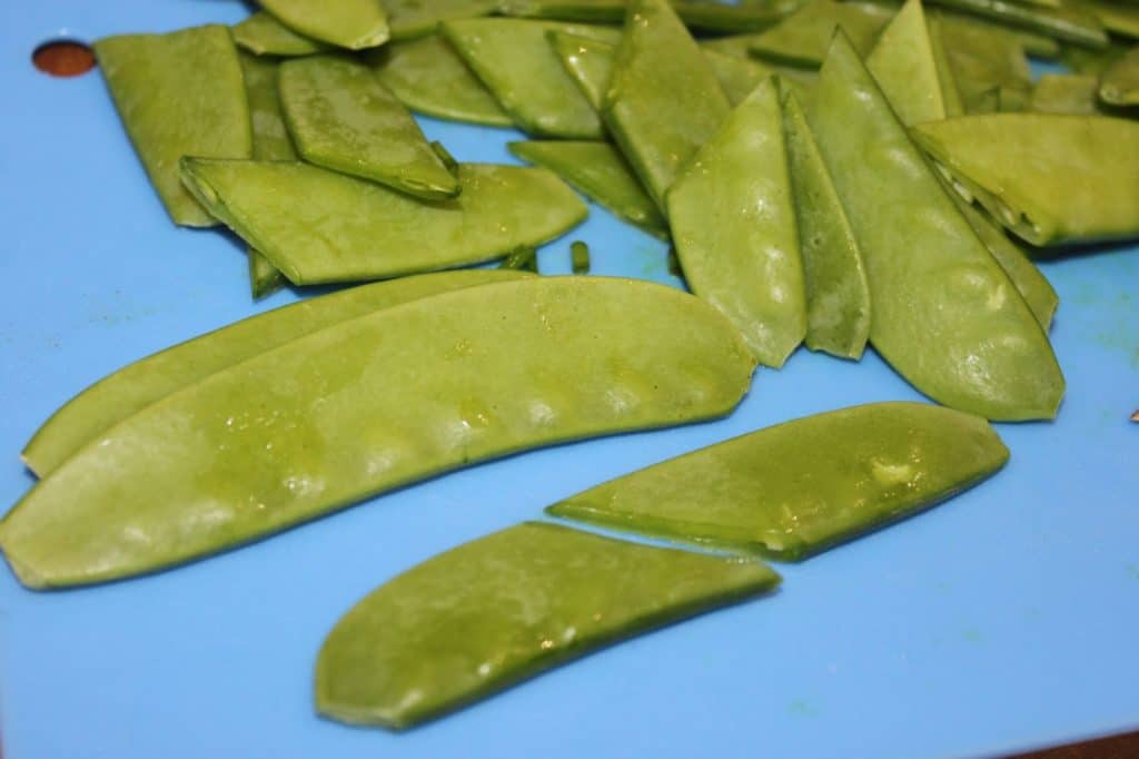 - Coupez en deux les haricots plats. Il n’y a qu’eux et les edamame qui vont cuire.