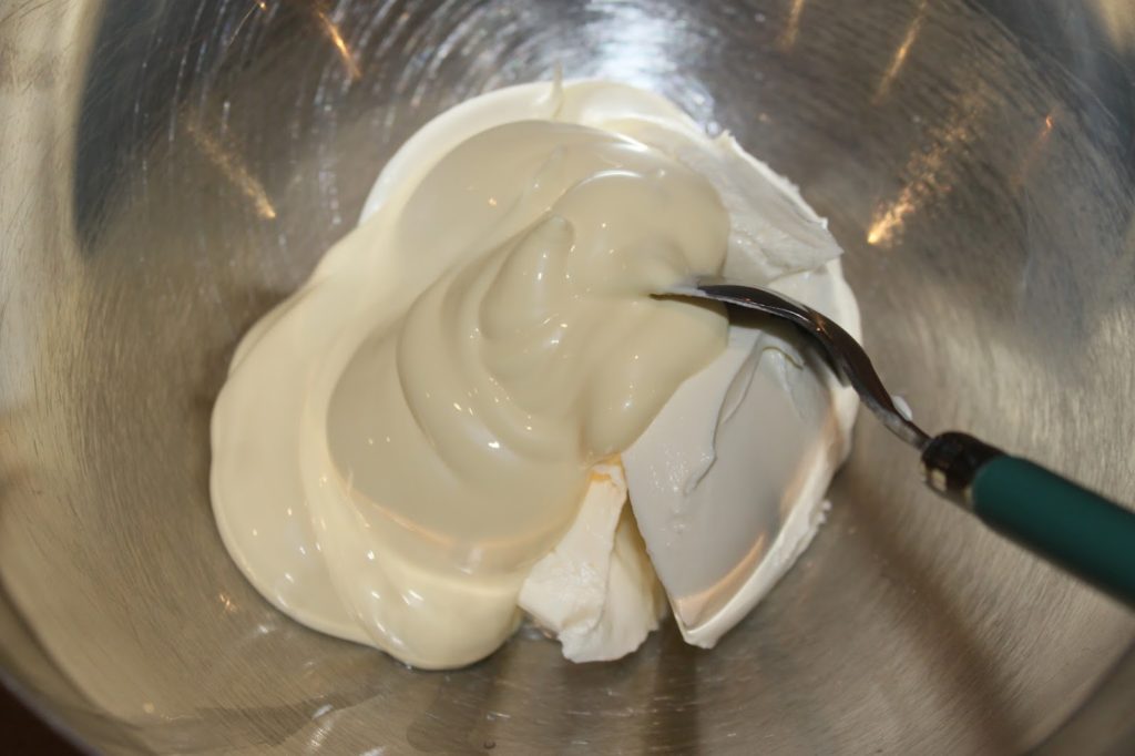 - Mélangez le cream cheese et la mayonnaise.